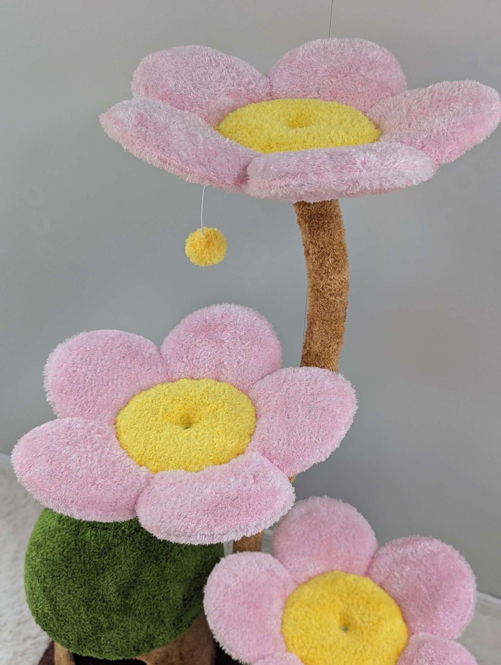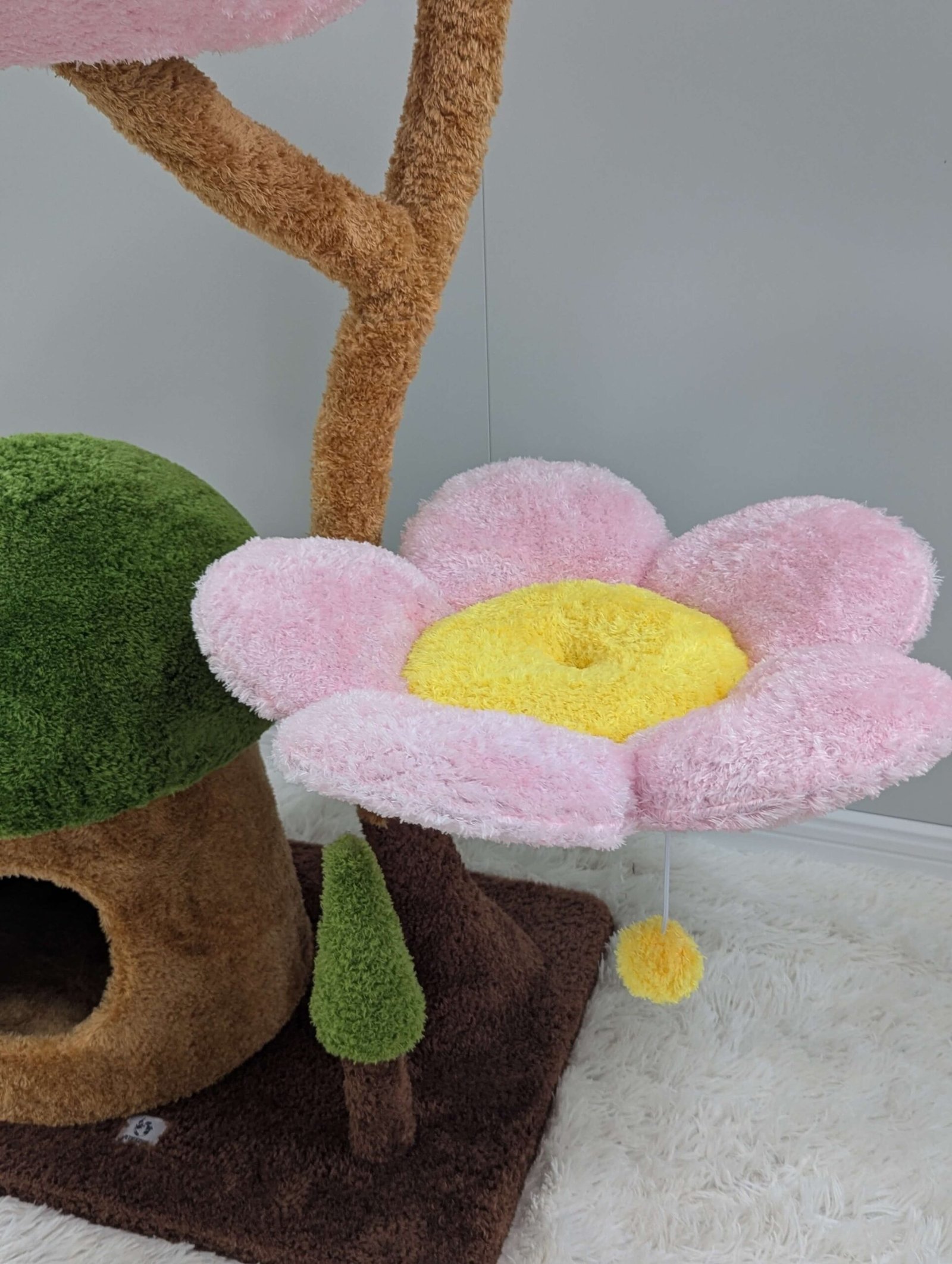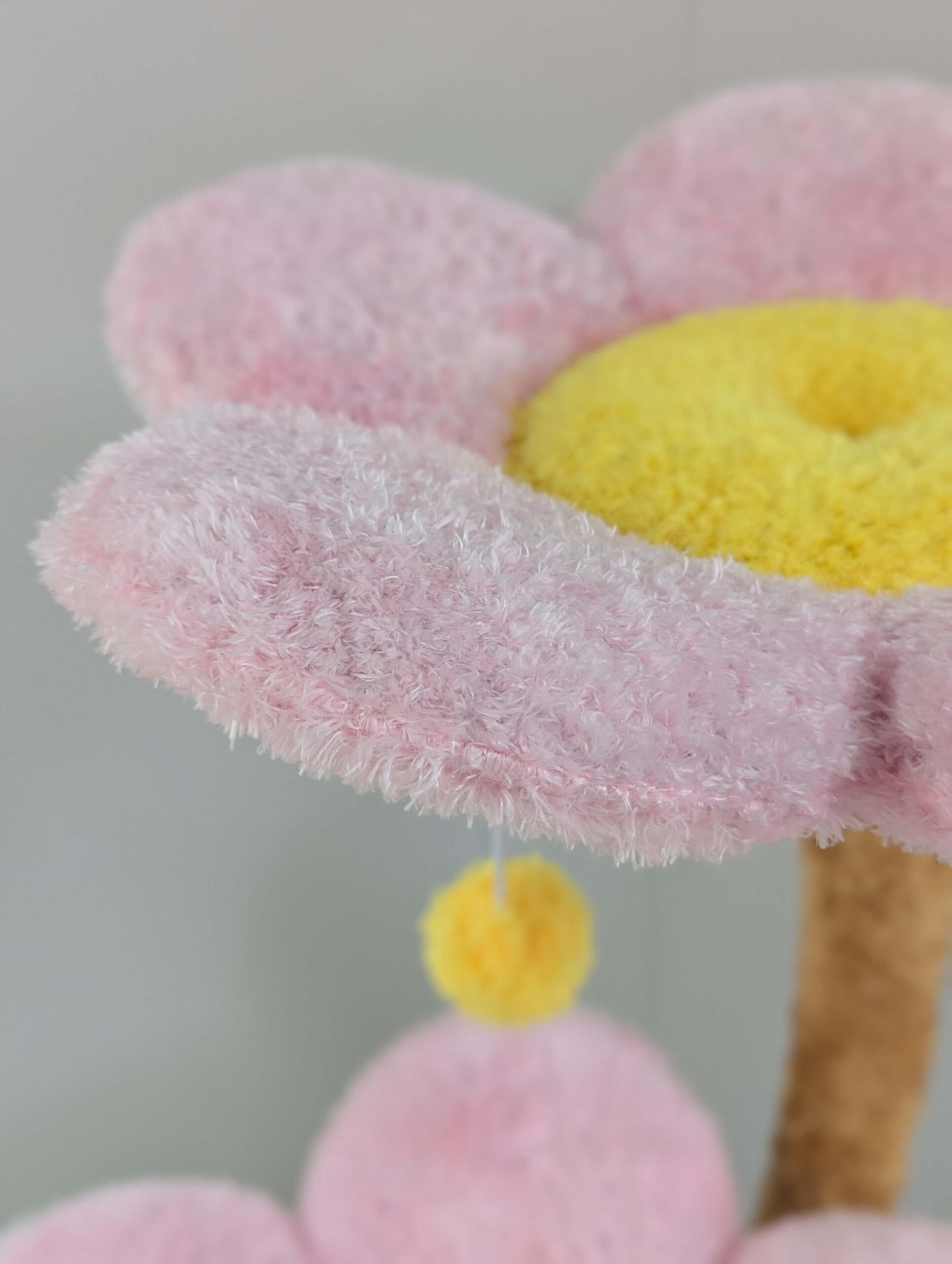 🧶 Lógó pompom játékok: A virágok aljáról lelógó puha sárga labdák játékra ösztönzik a cicát, így sosem fog unatkozni.
