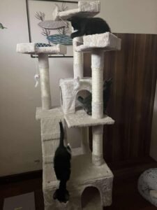 I ordered this 3 years ago, and it is still going strong, despite being heavily used by two of our three cats. We have recently moved to a flat with more space and ordered 2 additional cat towers. The shipping was fast both times. The prices are comparatively affordable. Best of all, Elvis and Milkshake love perching on the highest tiers.